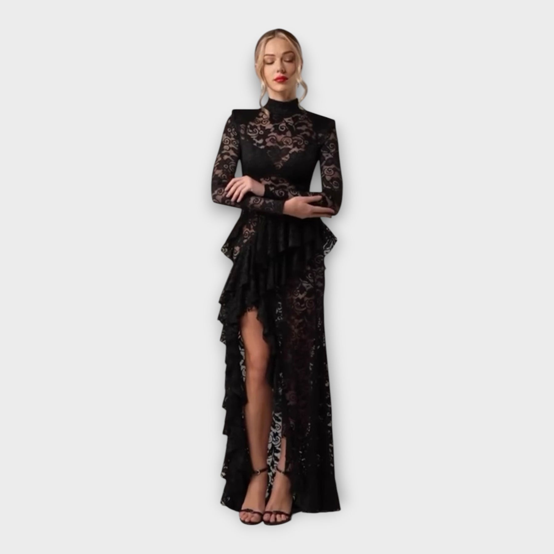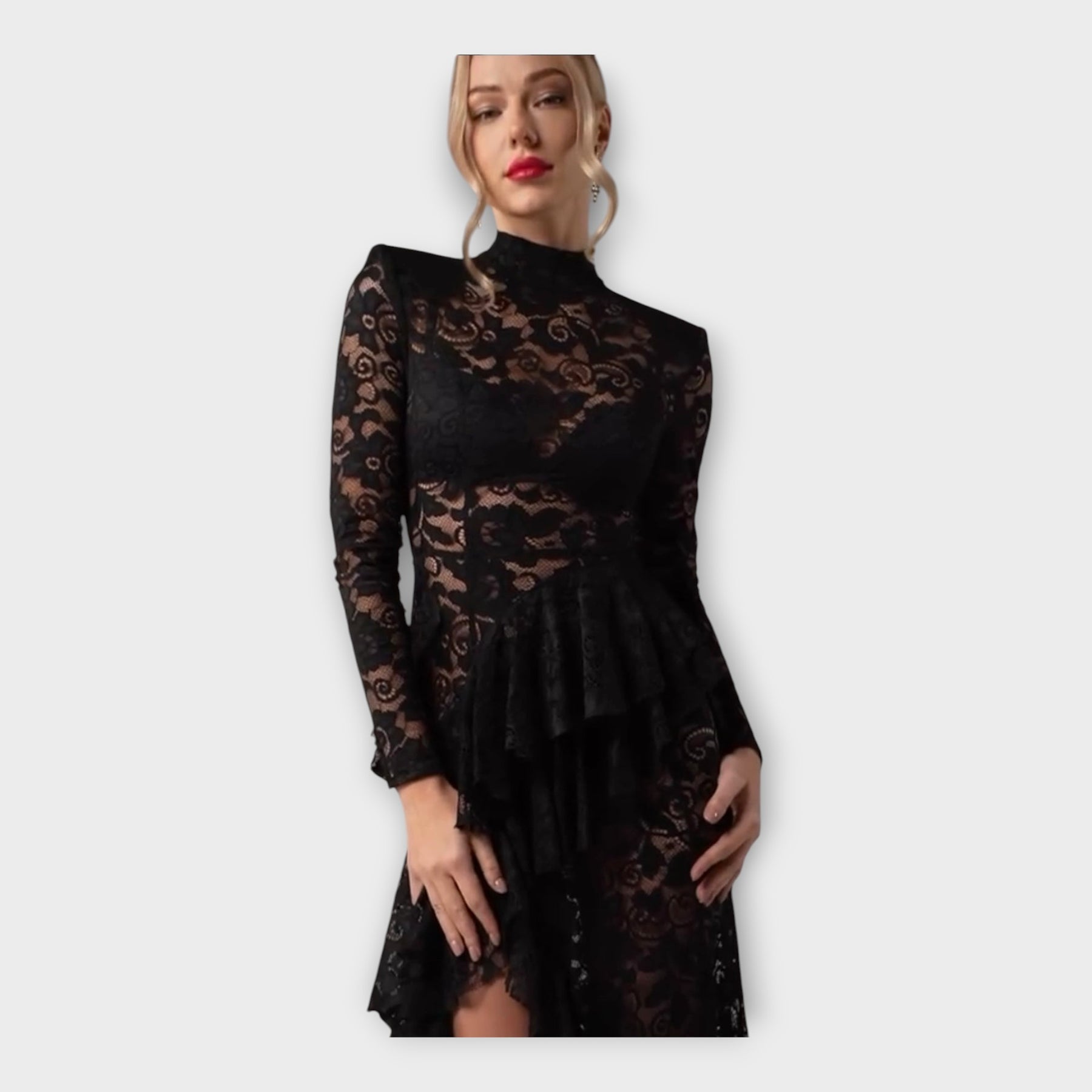 Ασύμμετρο φόρεμα δαντέλας με εκλεπτυσμένο σχεδιασμό