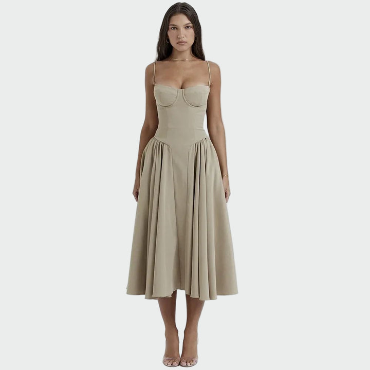 Ένα εντυπωσιακό και διαχρονικό φόρεμα που αγκαλιάζει τη σιλουέτα και χαρίζει ακαταμάχητη κομψότητα. Το εφαρμοστό μπούστο με λεπτές τιράντες τονίζει τη θηλυκότητα, ενώ η αέρινη φούστα προσφέρει άνεση και κίνηση. Ιδανικό για βραδινές εξόδους, κομψά καλέσματα και ξεχωριστές στιγμές.