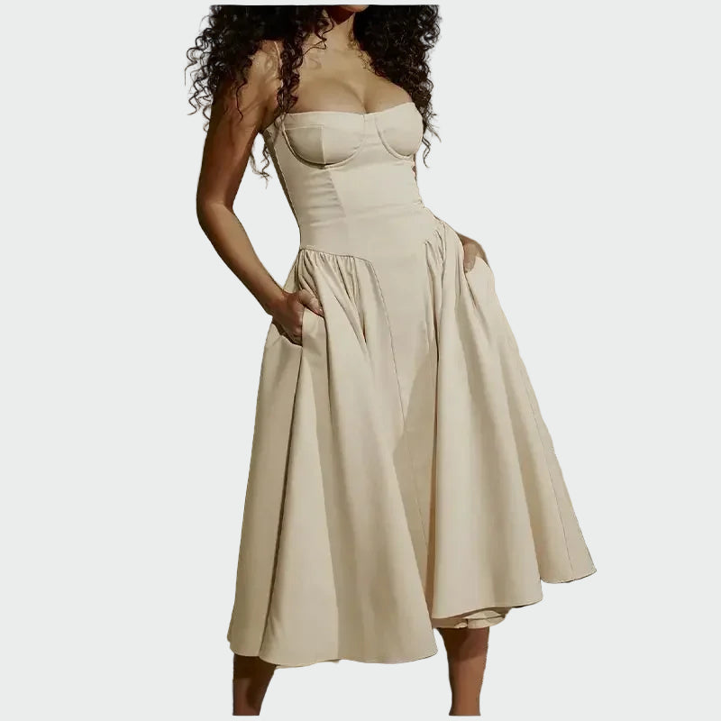• Εφαρμοστό μπούστο που αναδεικνύει το ντεκολτέ