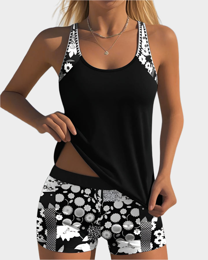 Άνετο Μαγιό σε Δύο Τεμάχια με Λουλουδάτο Σχέδιο