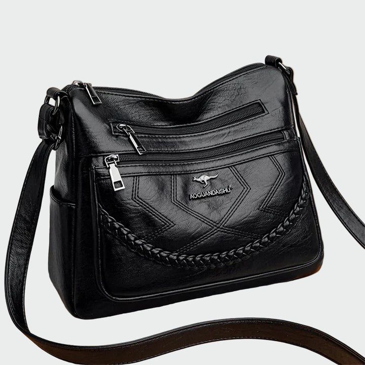 - Μαύρη τσάντα χιαστί με διακοσμητική πλεξούδα