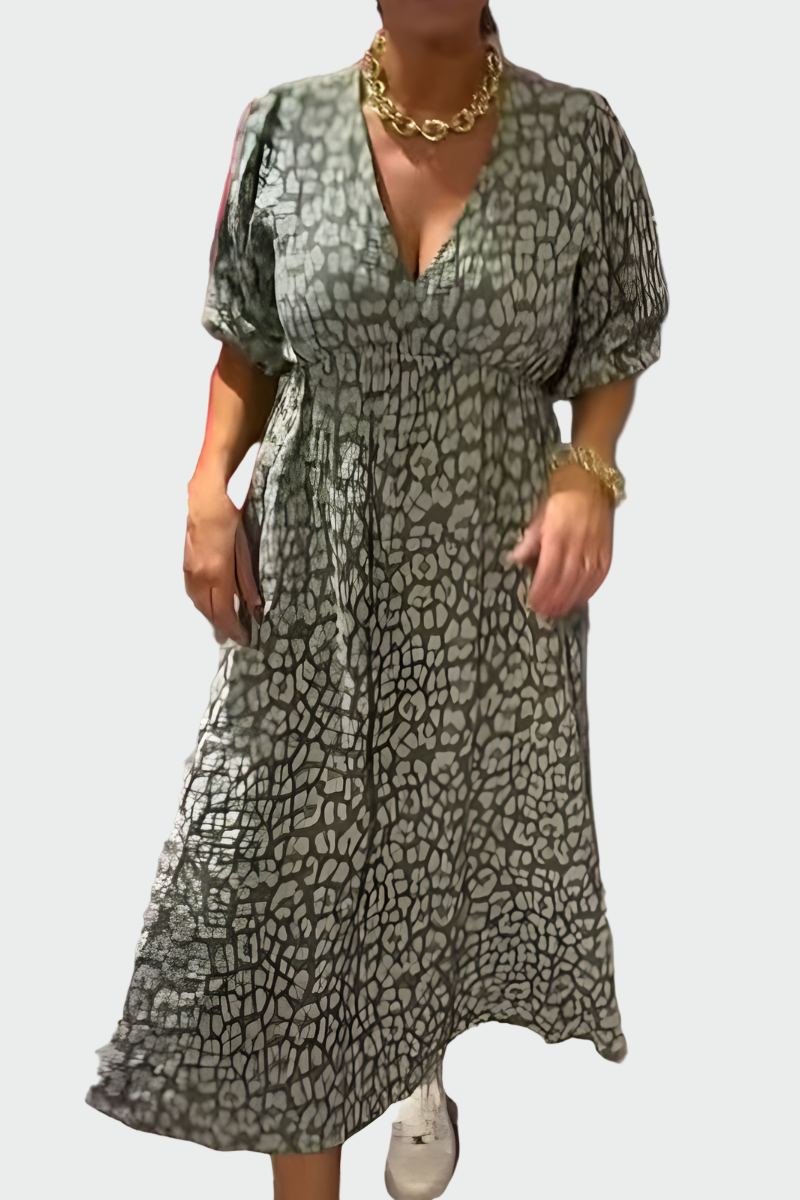 Γυναικείο **καλοκαιρινό μάξι φόρεμα** σε αποχρώσεις του ροζ και του λευκού με εντυπωσιακά γεωμετρικά μοτίβα. Διαθέτει **V λαιμόκοψη** που κολακεύει τη σιλουέτα, άνετη γραμμή και ελαφρύ ύφασμα που χαρίζει δροσιά και ευκολία στην κίνηση. Ιδανικό για απογευματινές βόλτες, διακοπές ή casual chic εμφανίσεις.