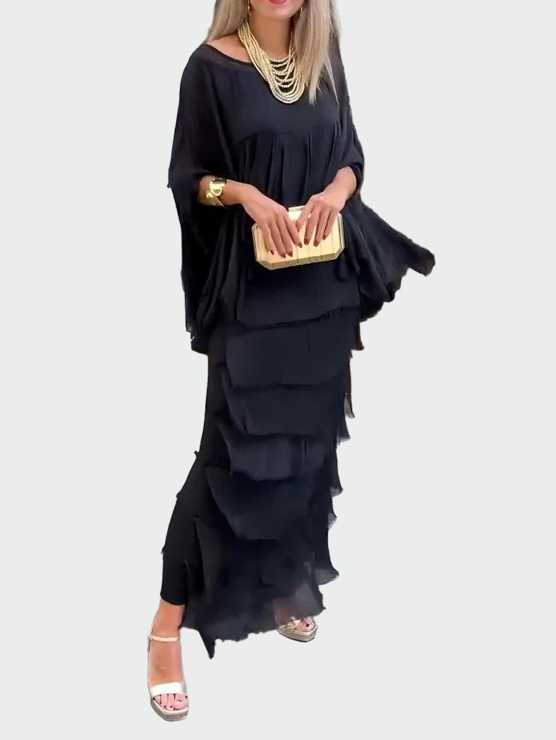 Ασύμμετρο Φόρεμα με Στρώσεις και Βολάν