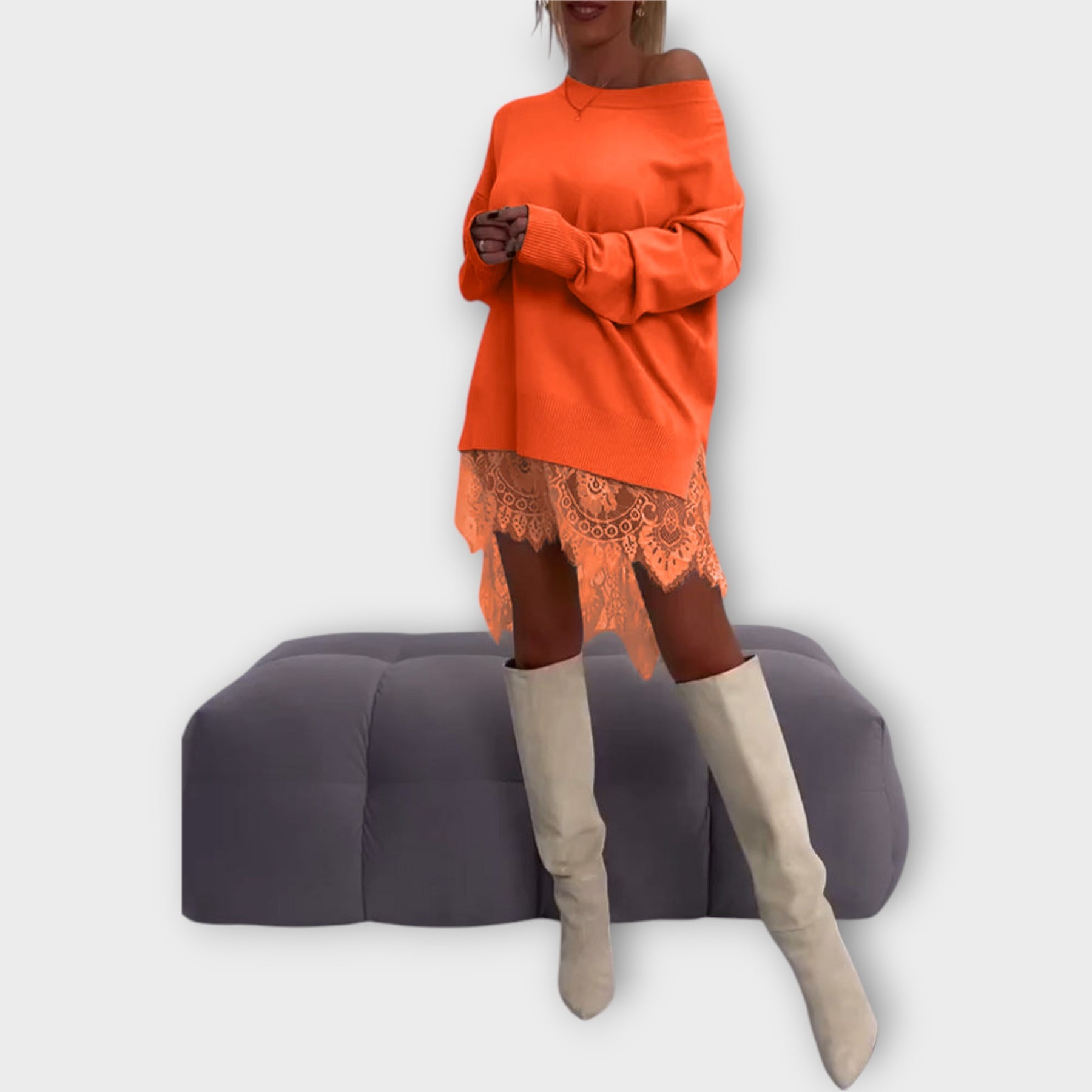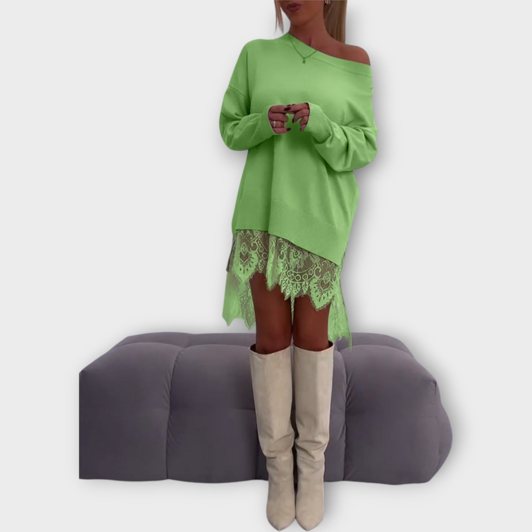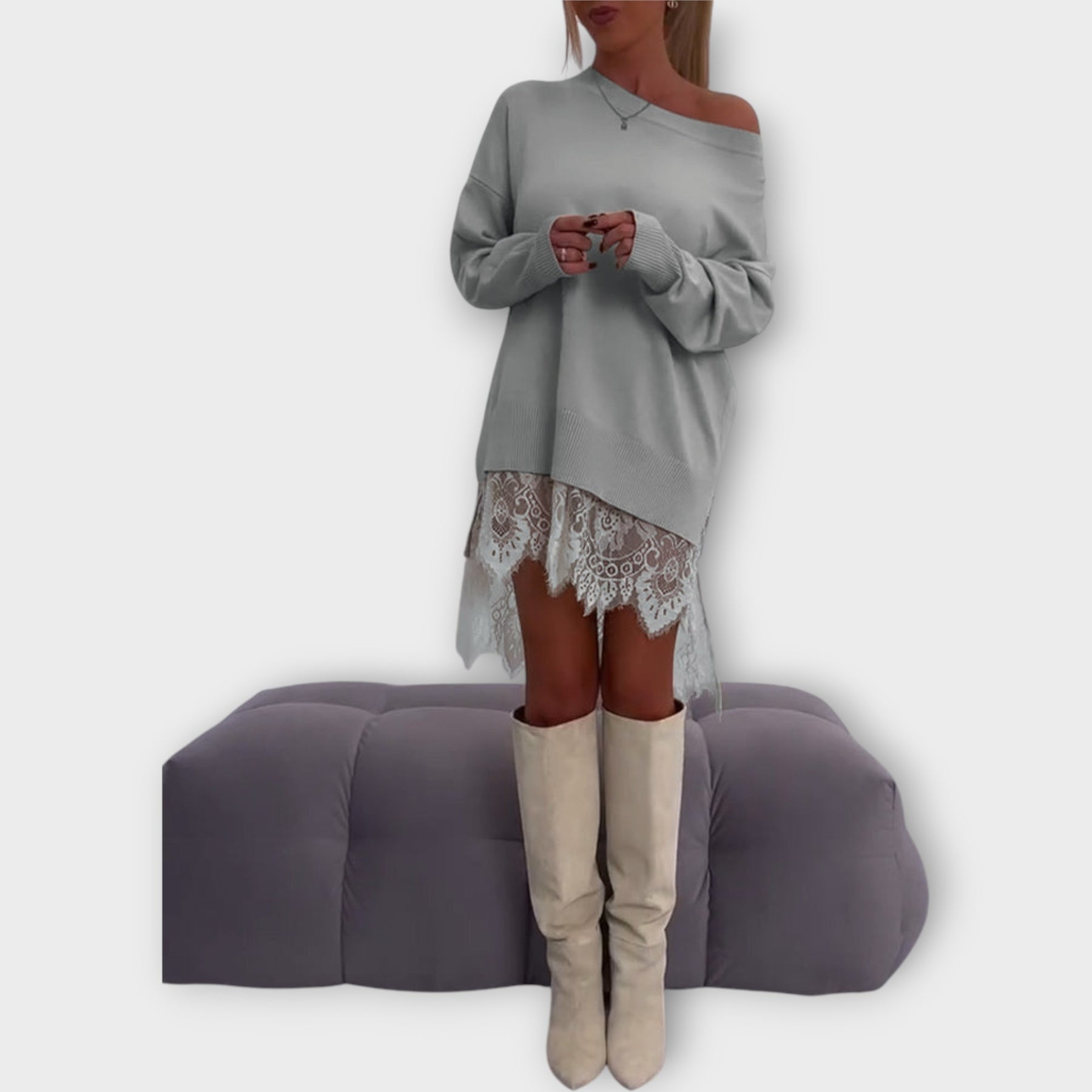 Πλεκτό Φόρεμα με Δαντέλα και Χαλαρή Εφαρμογή