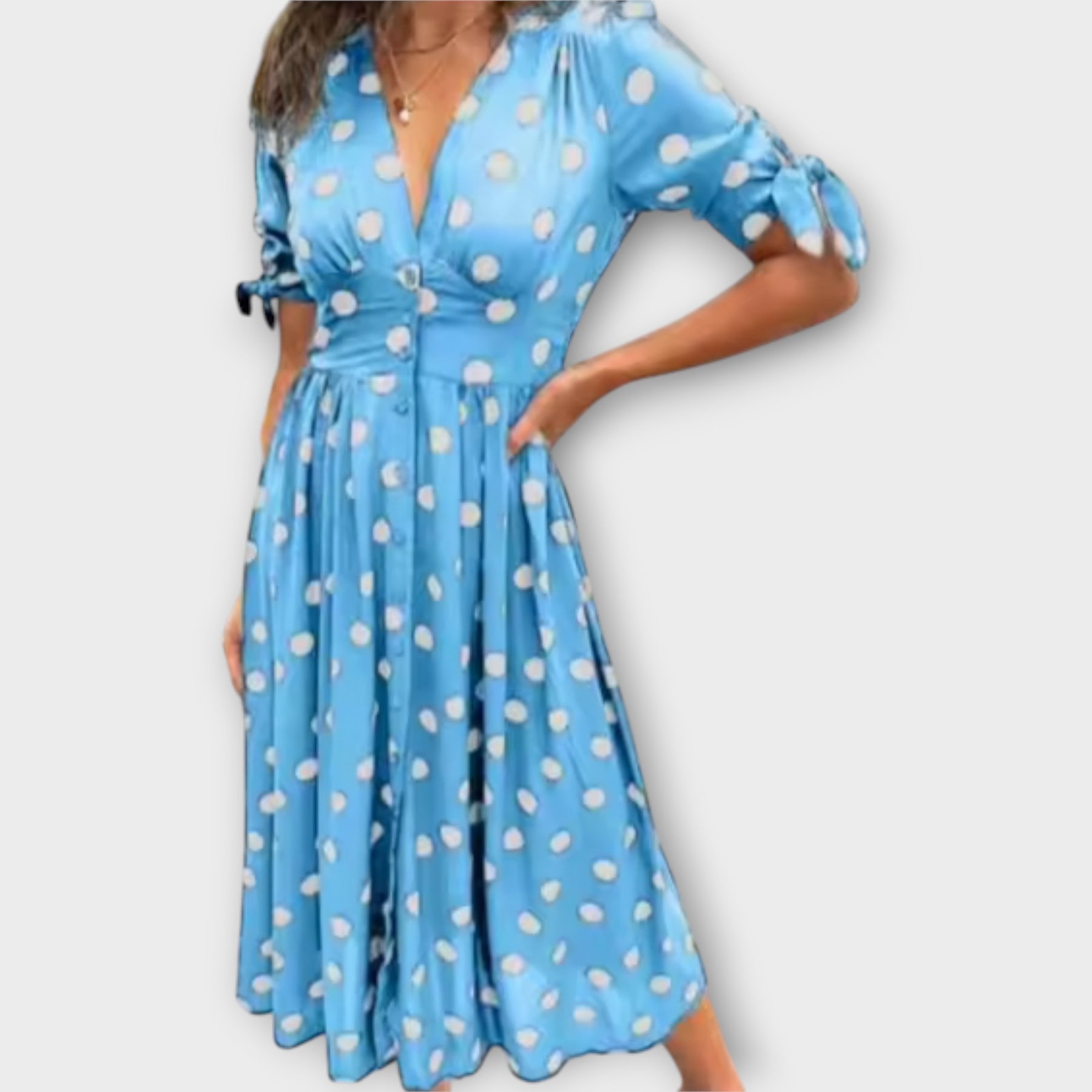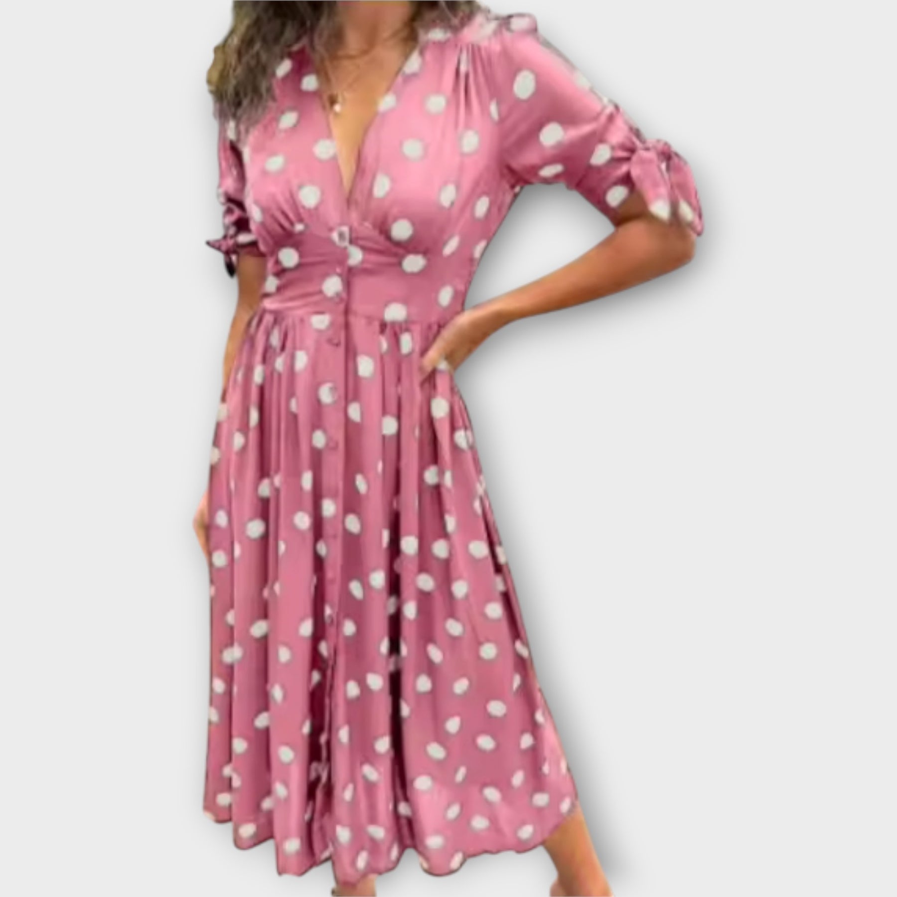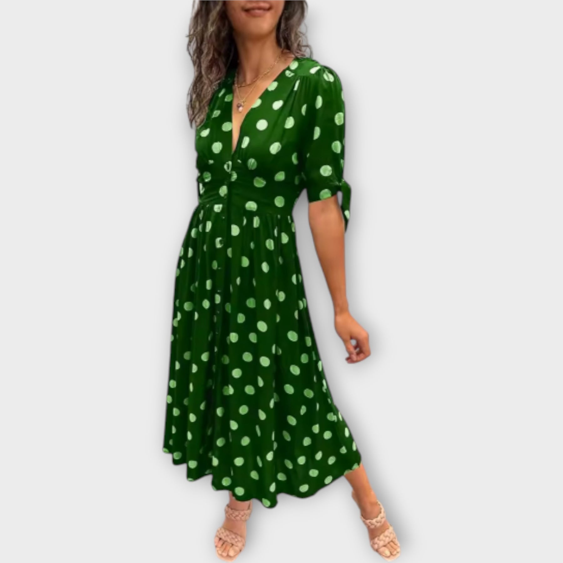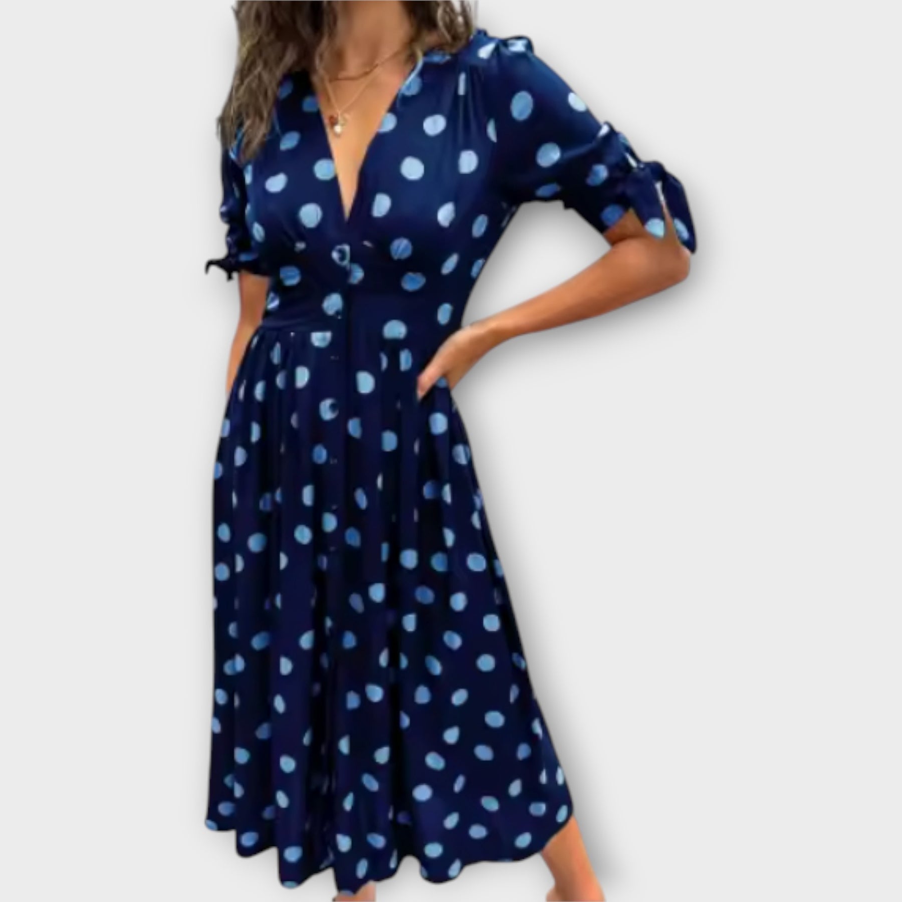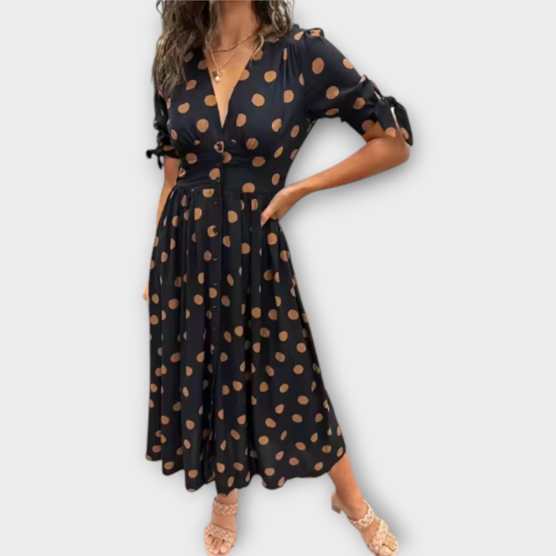 Ένα κομψό midi φόρεμα που αναδεικνύει τη θηλυκότητα με τη διαχρονική του γραμμή, προσφέροντας στυλ και άνεση σε κάθε περίσταση. Ο ευέλικτος σχεδιασμός του το καθιστά ιδανικό για casual αλλά και πιο κομψές εμφανίσεις, χαρίζοντας πάντα μια εκλεπτυσμένη πινελιά. Ένα κομμάτι που συνδυάζει πρακτικότητα και διαχρονική φινέτσα.