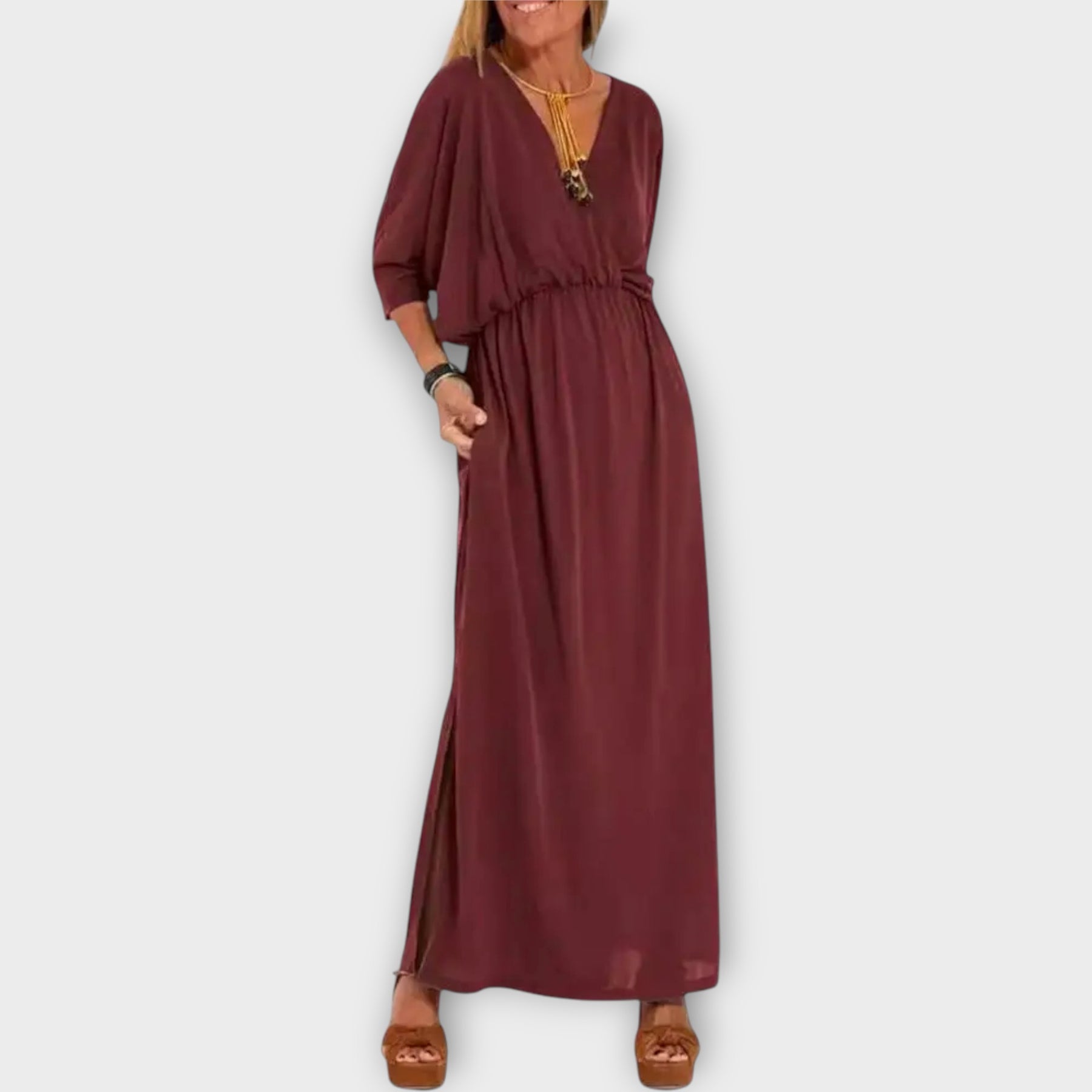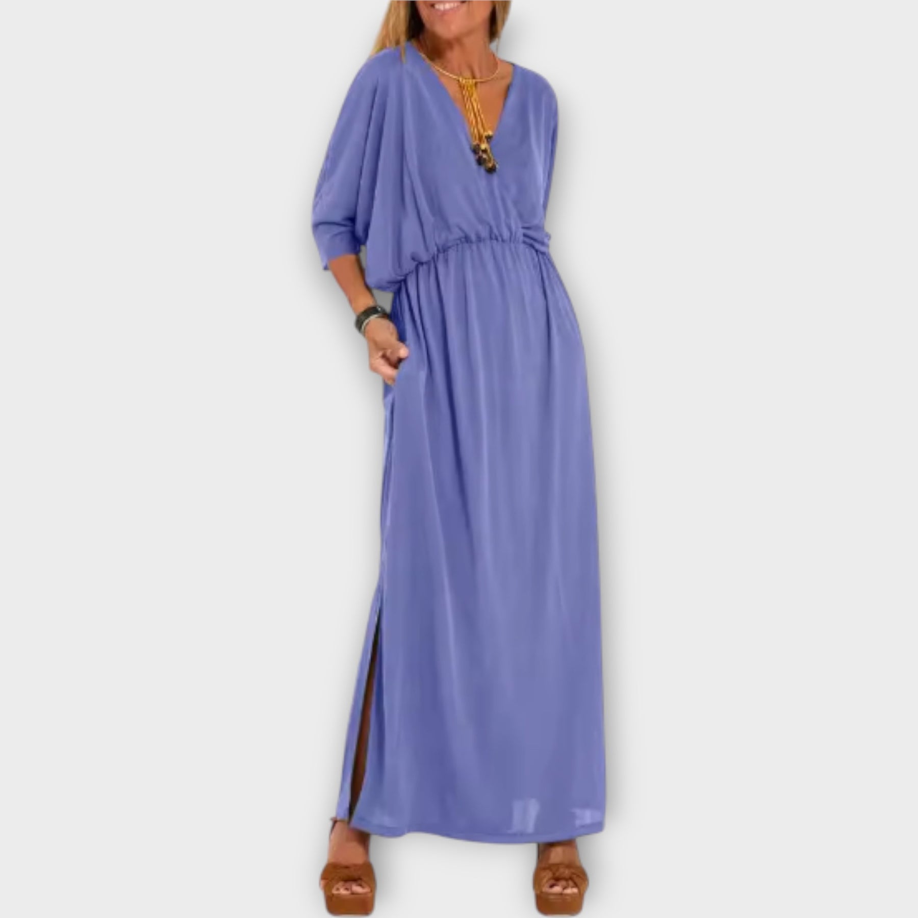 Ένα κομψό μακρύ φόρεμα που προσαρμόζεται σε κάθε στυλ, χαρίζοντας την τέλεια τελική πινελιά σε κάθε εμφάνιση. Ο ευέλικτος σχεδιασμός του το καθιστά ιδανικό για όλες τις περιστάσεις, από casual έως πιο επίσημες. Ένα κομμάτι που συνδυάζει πρακτικότητα και διαχρονική φινέτσα.