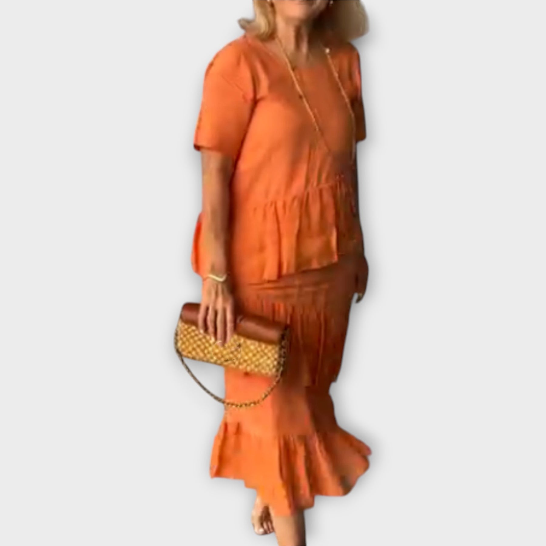 Ένα κομψό φόρεμα που προσαρμόζεται σε κάθε στυλ, χαρίζοντας την τέλεια τελική πινελιά σε κάθε εμφάνιση. Ο ευέλικτος σχεδιασμός του το καθιστά ιδανικό για όλες τις περιστάσεις, από καθημερινές εμφανίσεις έως πιο κομψές εξόδους. Ένα κομμάτι που συνδυάζει πρακτικότητα και διαχρονική φινέτσα.