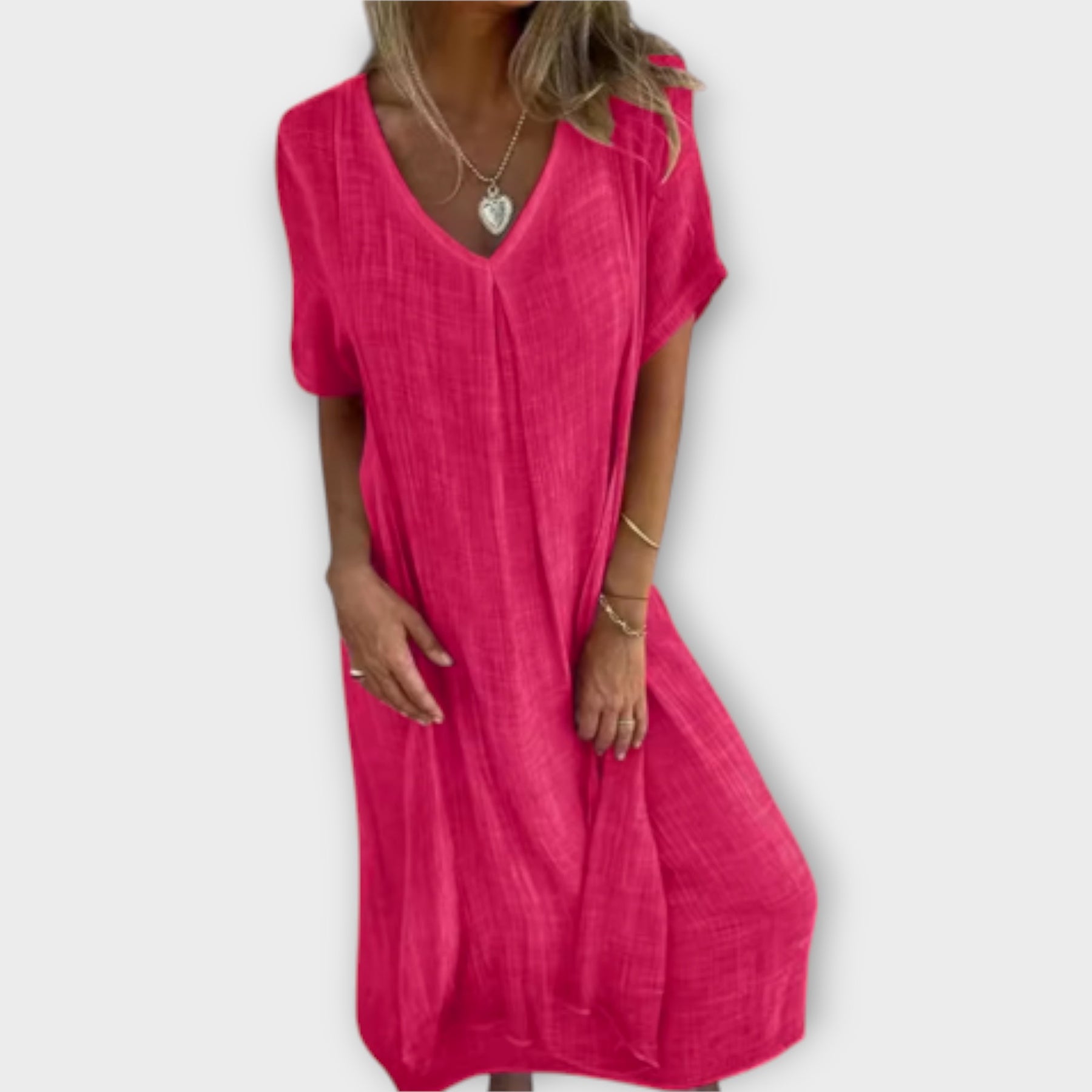 Ένα κομψό φόρεμα που προσαρμόζεται σε κάθε στυλ, χαρίζοντας την τέλεια τελική πινελιά σε κάθε εμφάνιση. Ο ευέλικτος σχεδιασμός του το καθιστά ιδανικό για όλες τις περιστάσεις, από casual έως πιο επίσημες. Ένα κομμάτι που συνδυάζει πρακτικότητα και διαχρονική φινέτσα.
