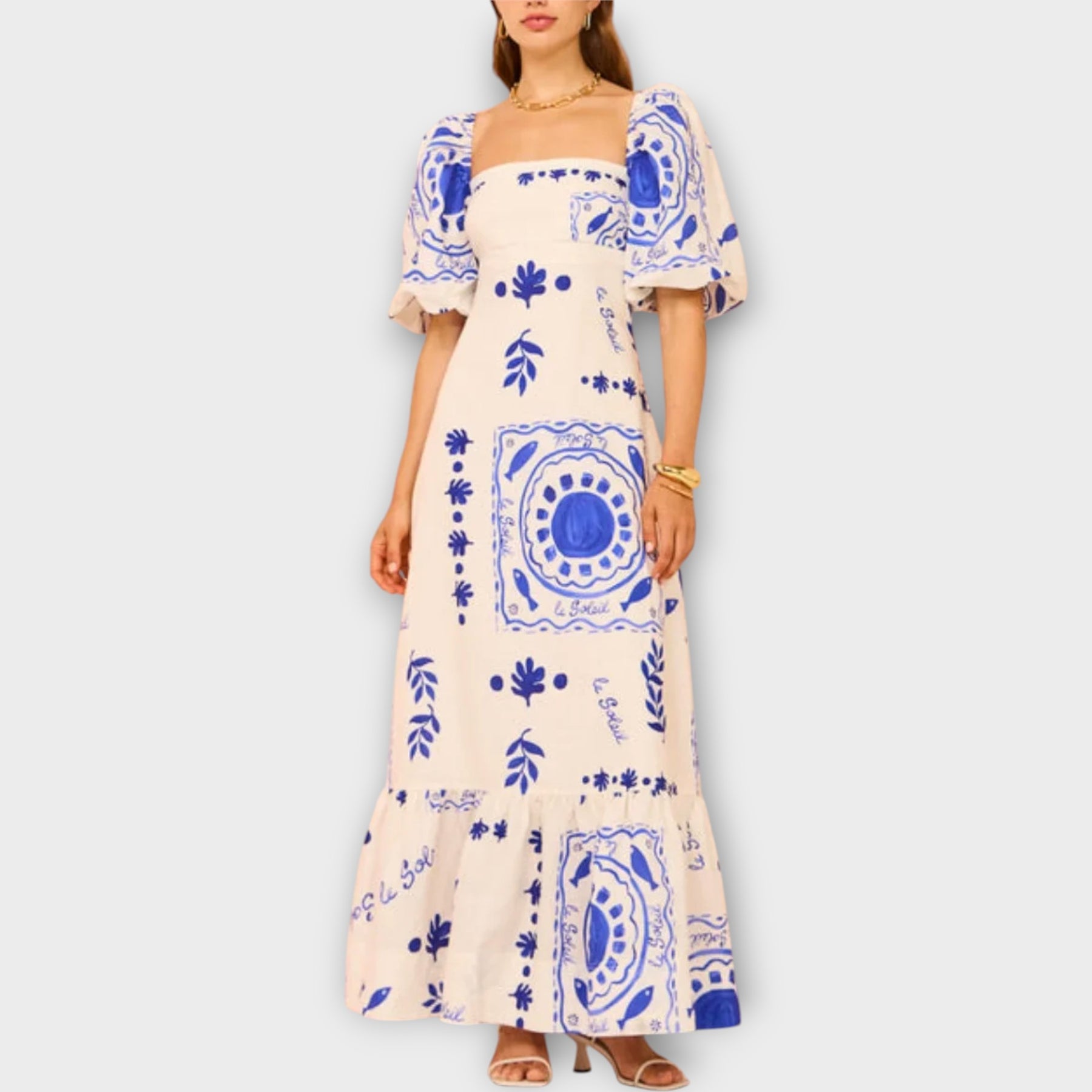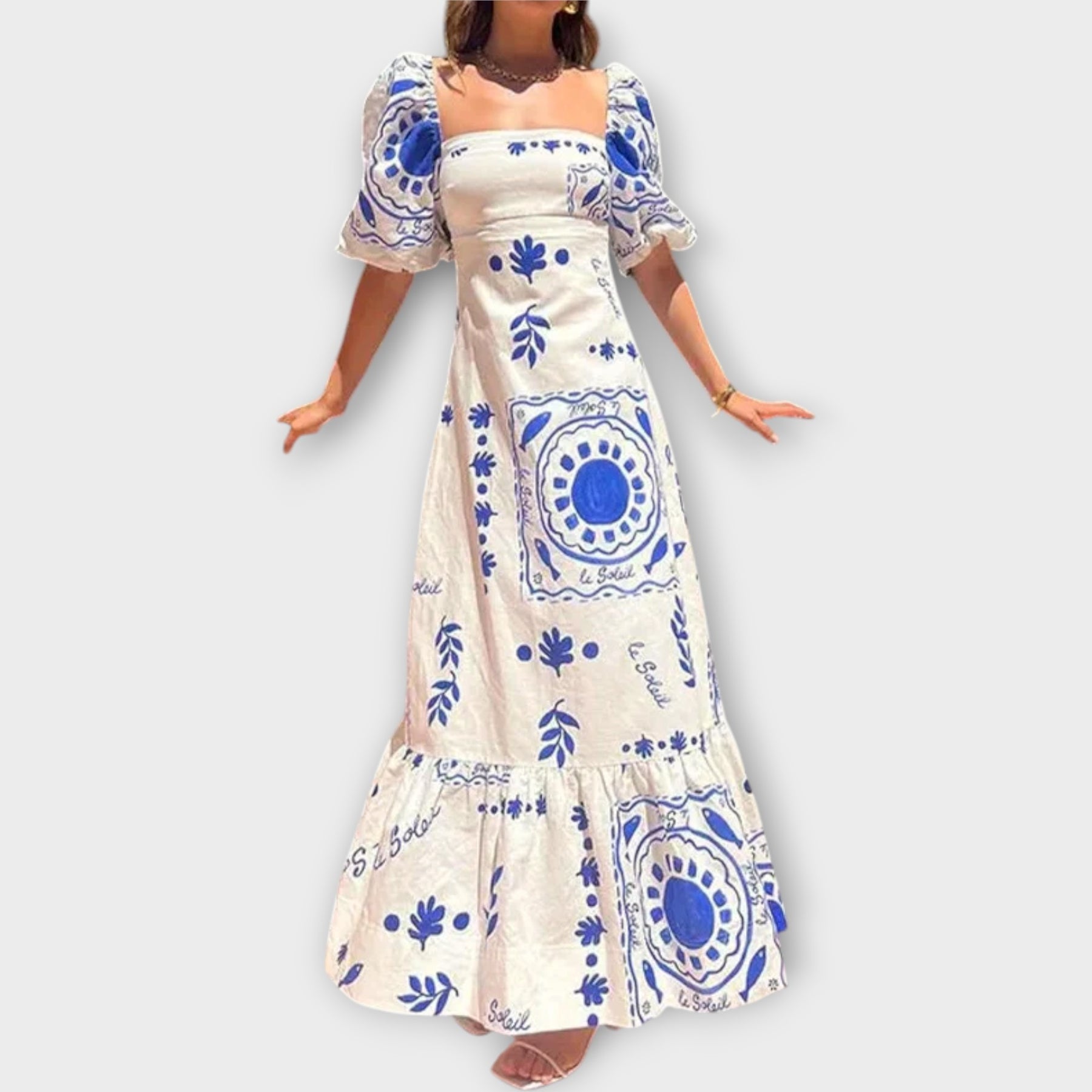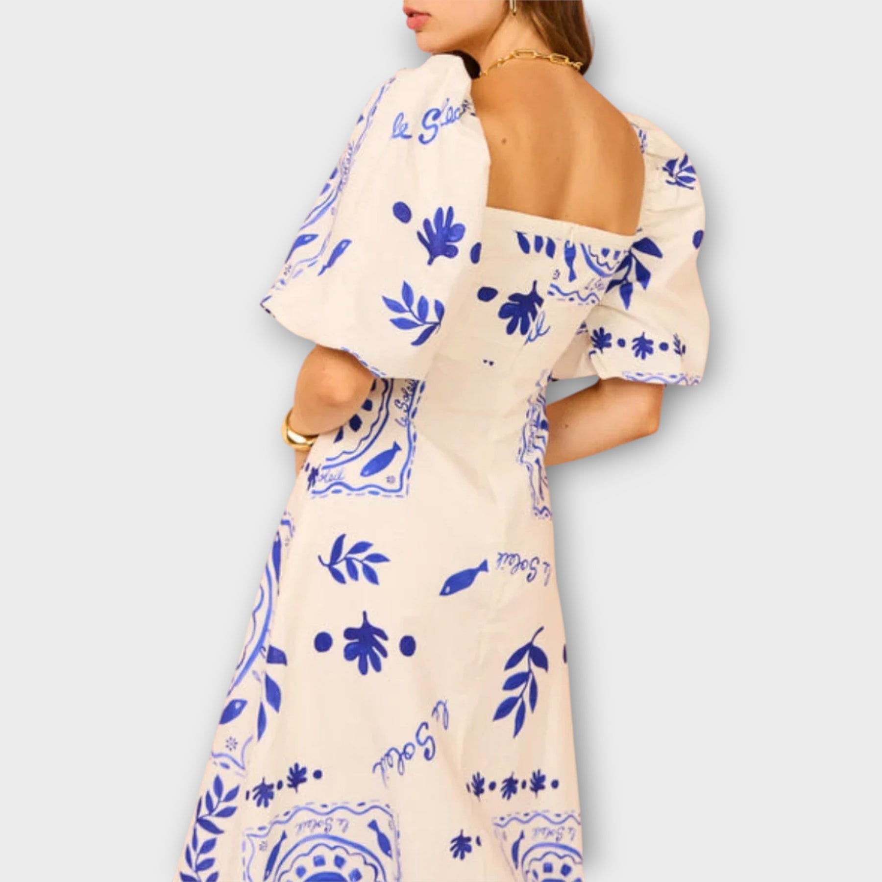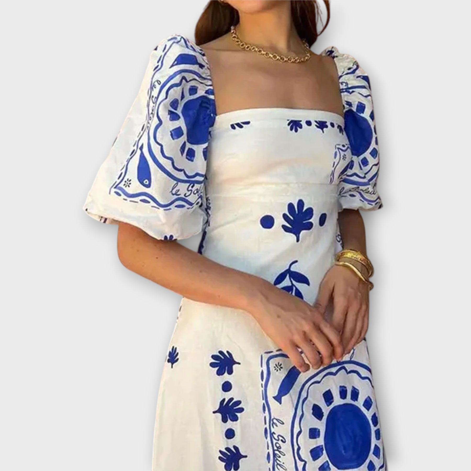 Κομψό Φόρεμα με Τετράγωνη Λαιμόκοψη και Φουσκωτά Μανίκια