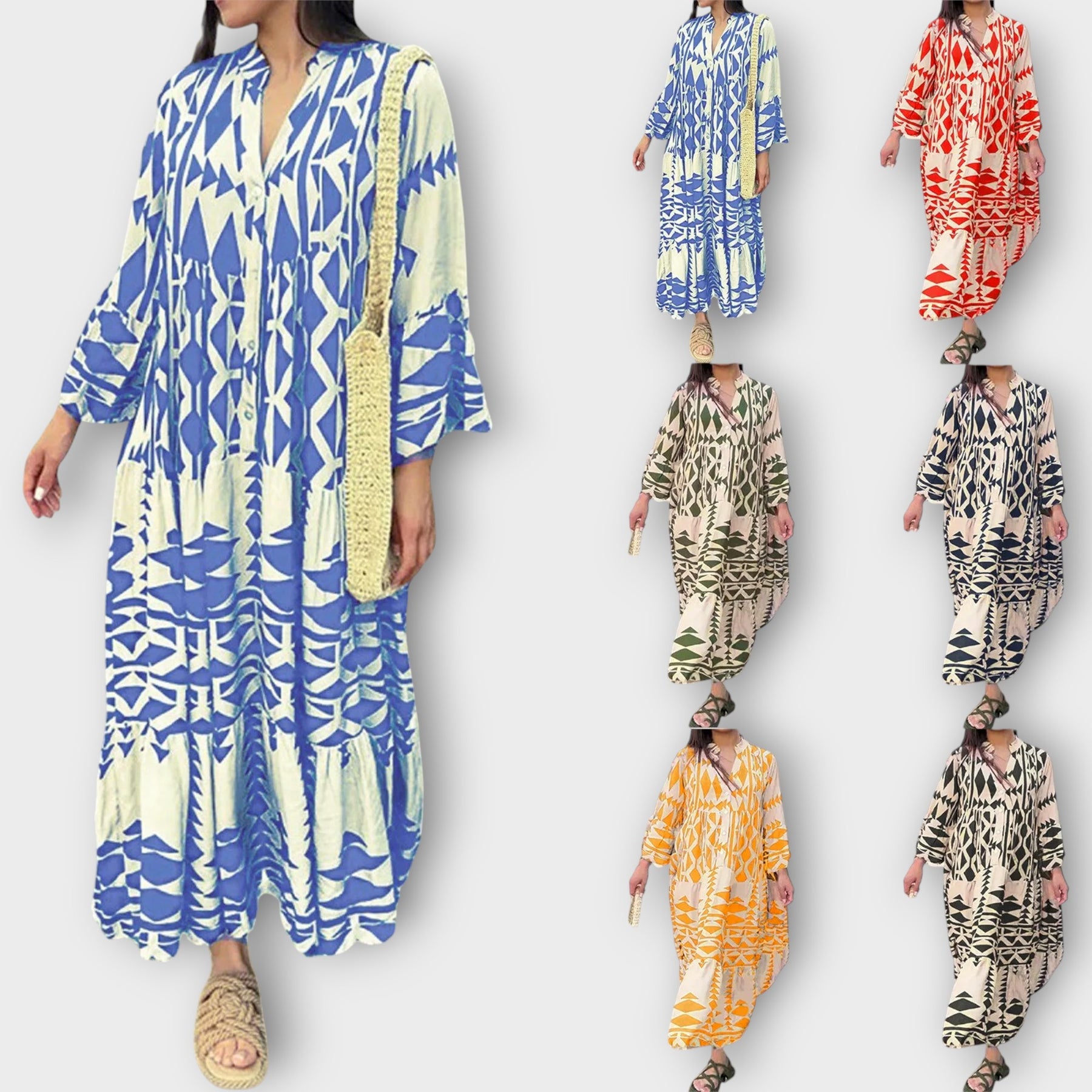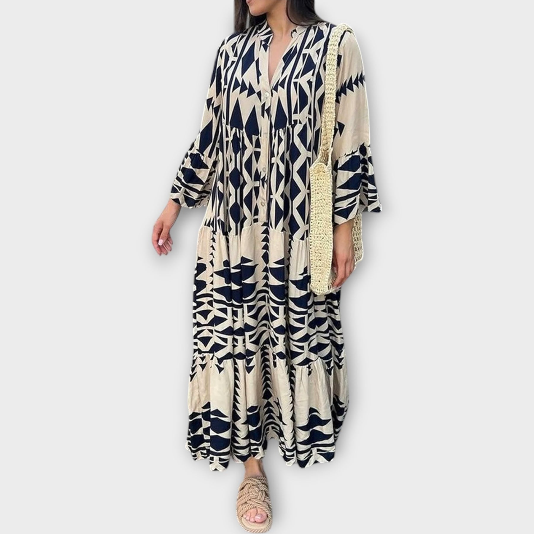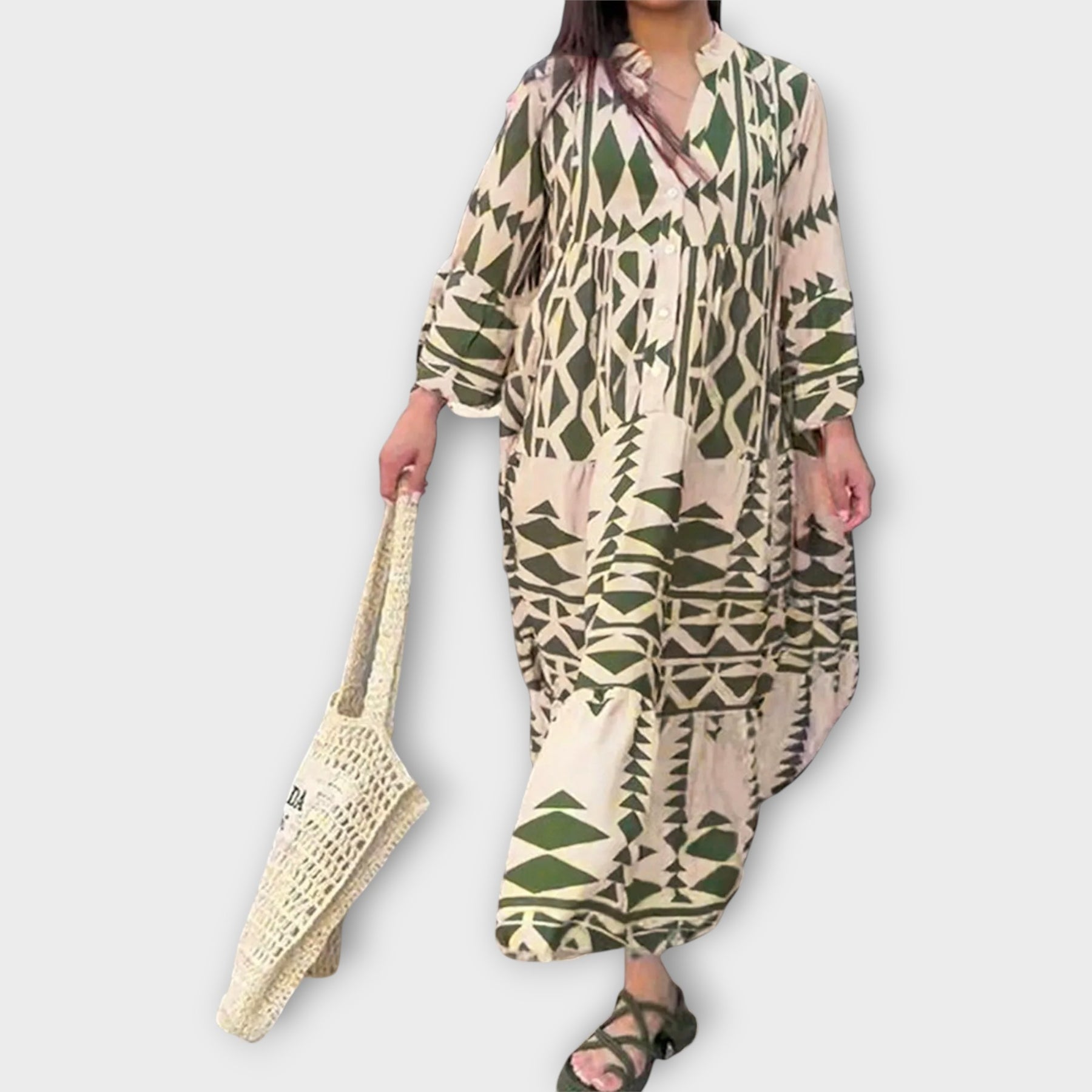 Μακρύ Φόρεμα με Χαλαρή Γραμμή και Διακριτικό Σχέδιο