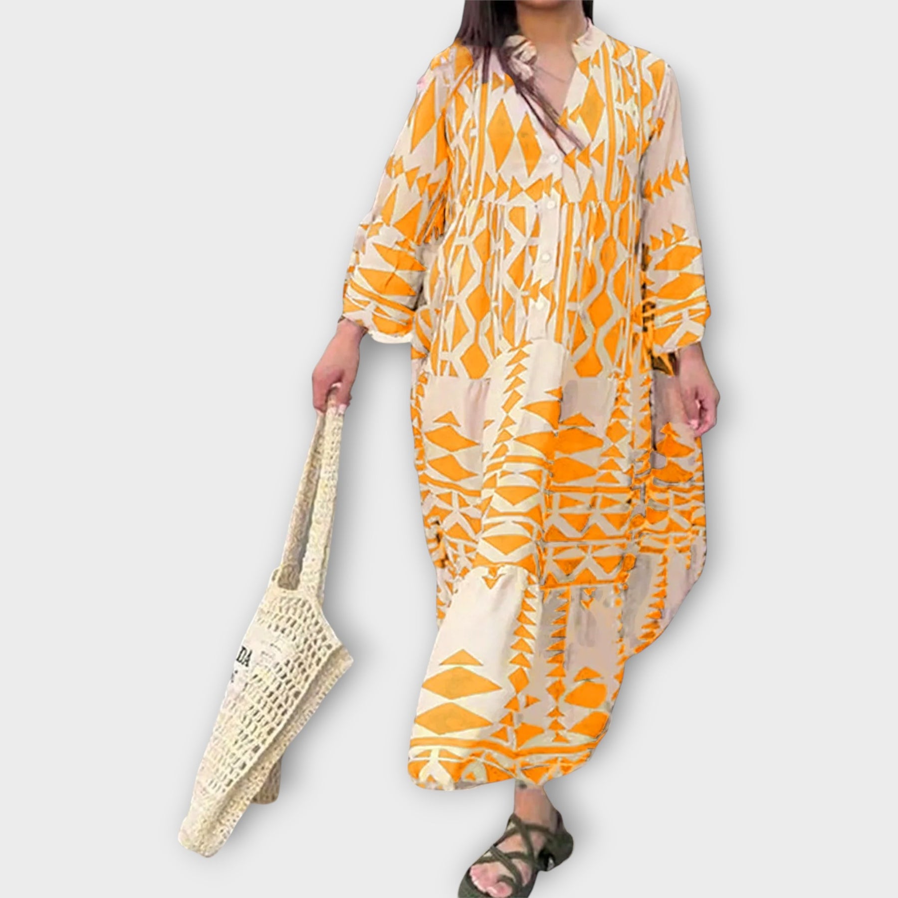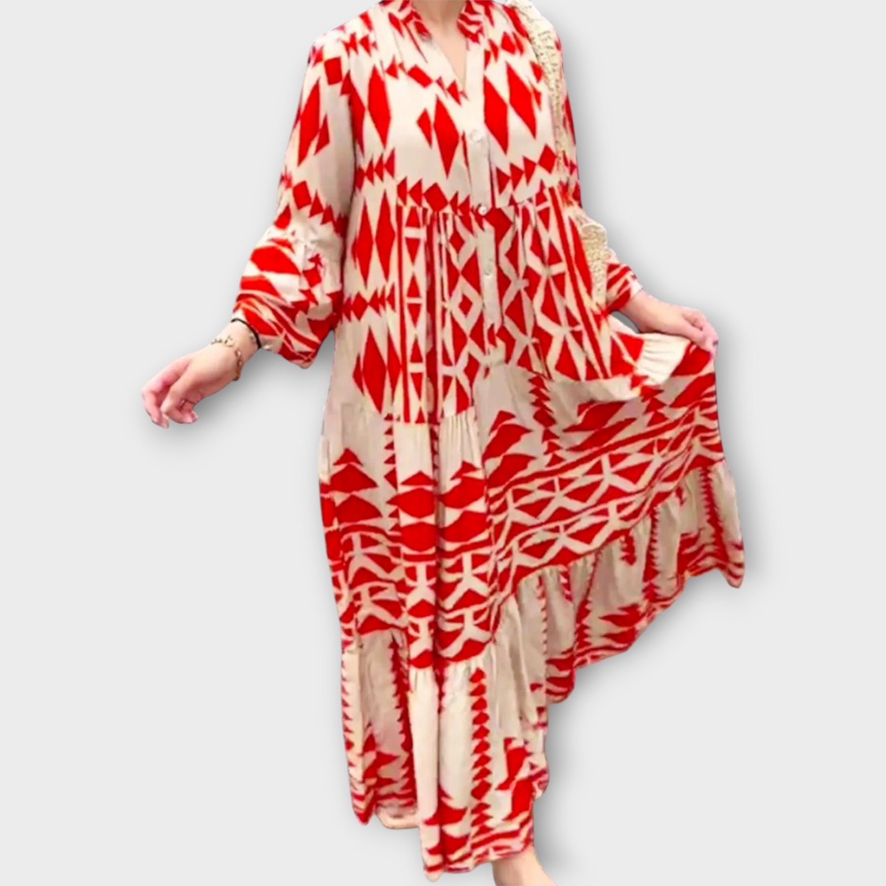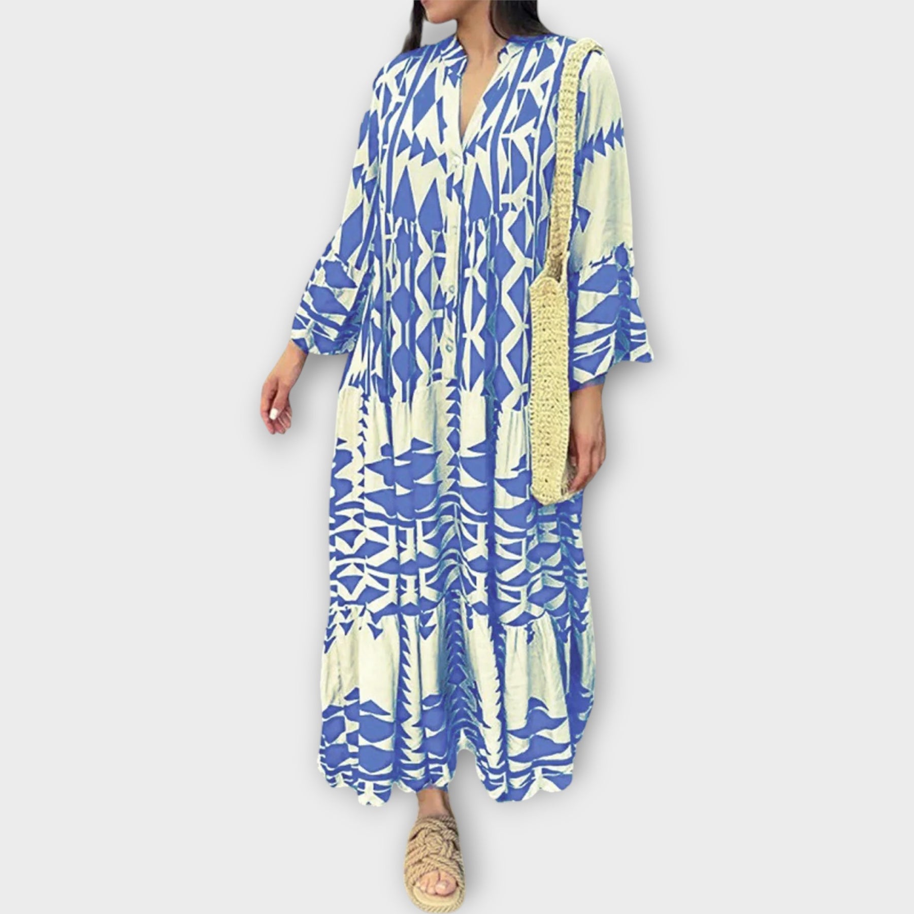 Μακρύ Φόρεμα με Χαλαρή Γραμμή και Διακριτικό Σχέδιο
