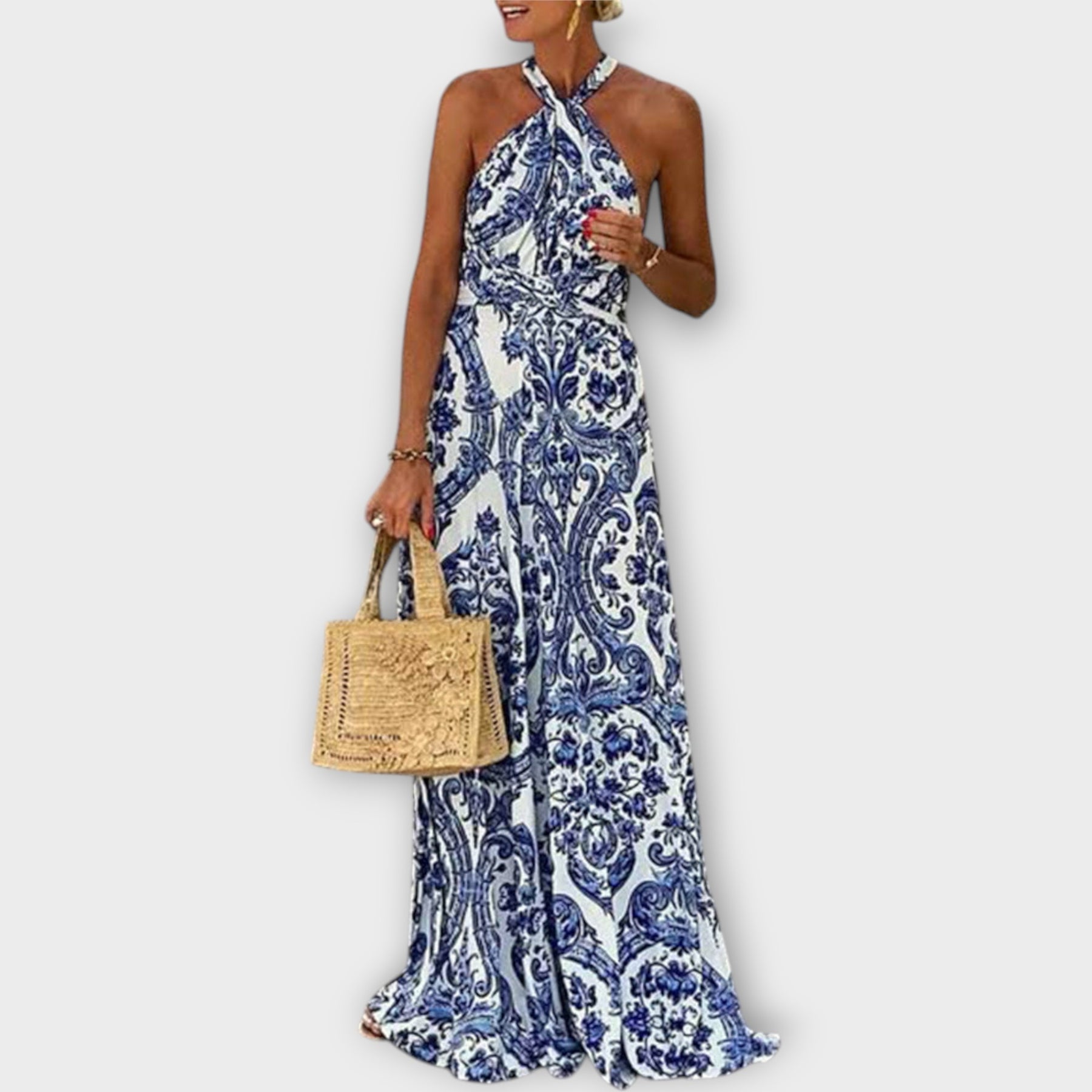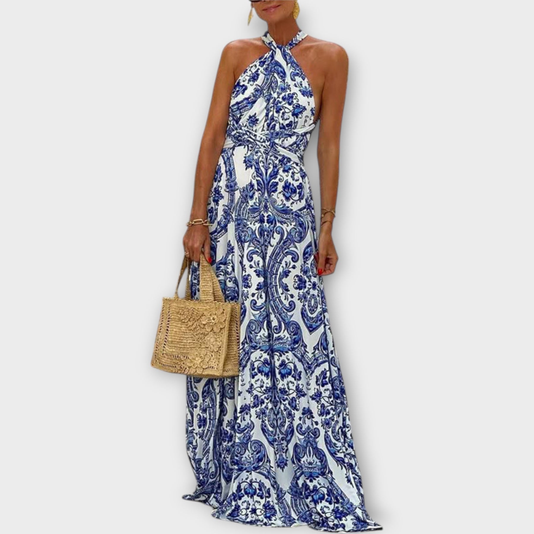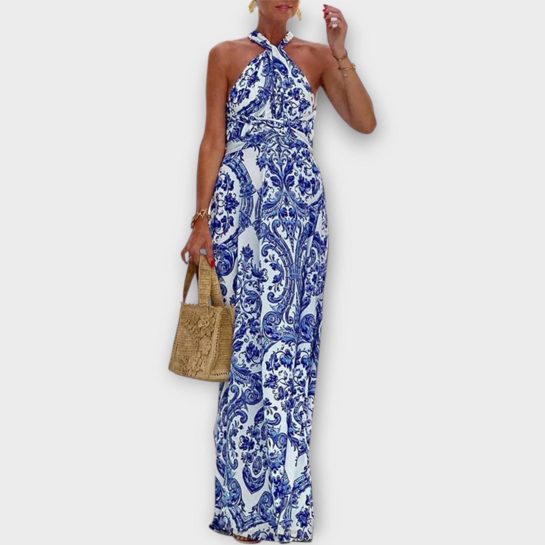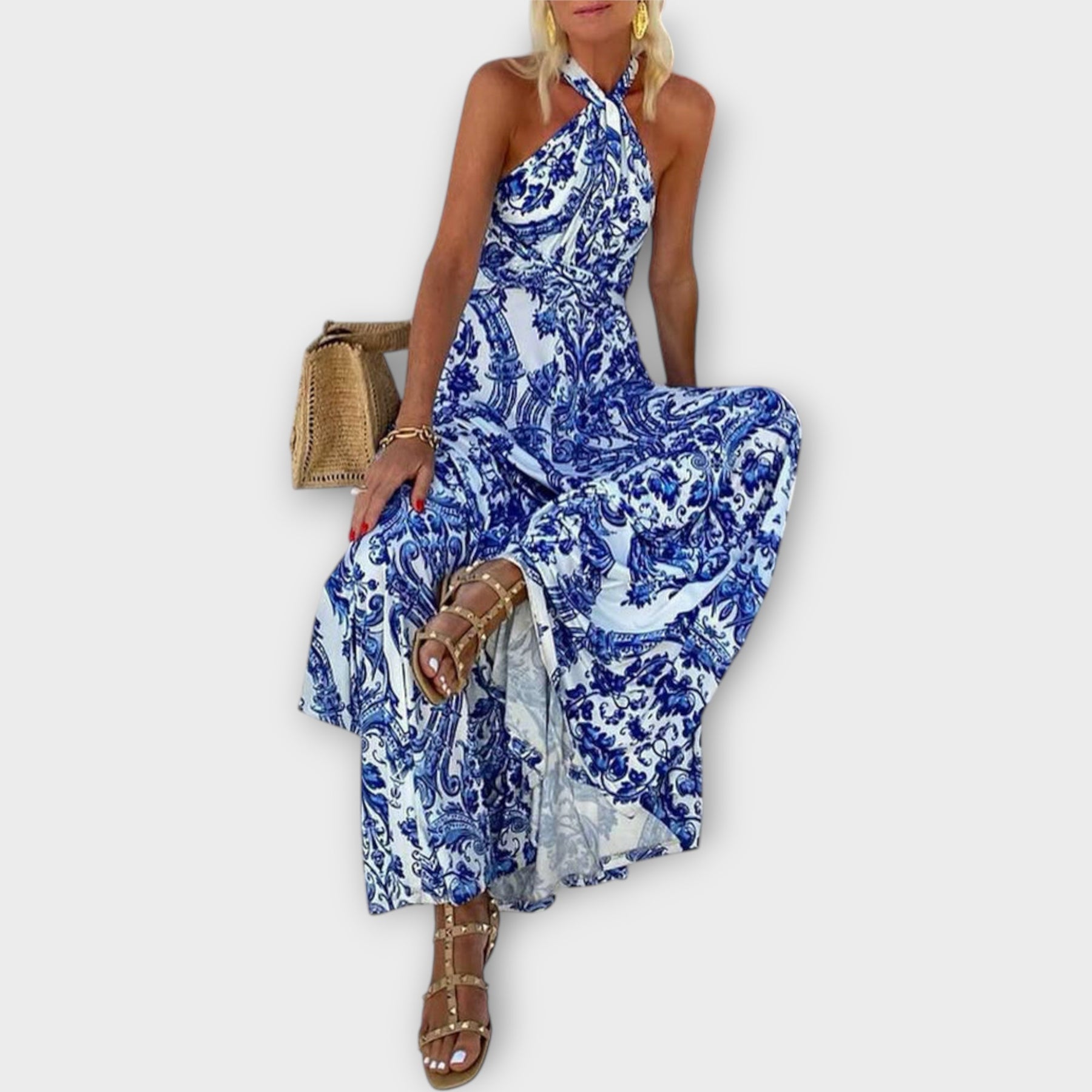 Μακρύ Φόρεμα με Δέσιμο στον Λαιμό και Ρομαντική Αέρινη Γραμμή