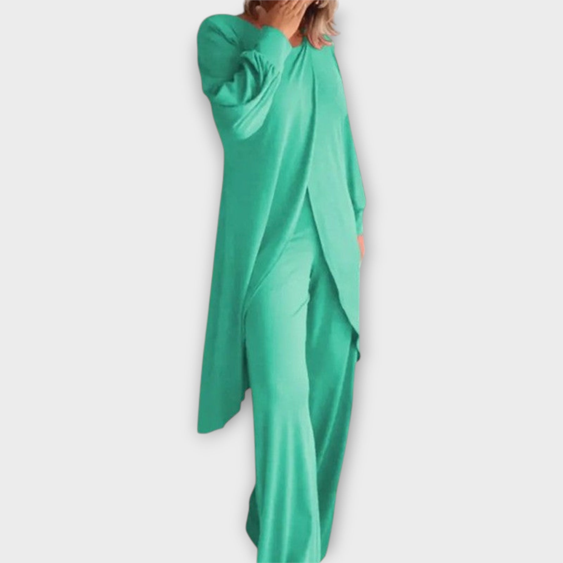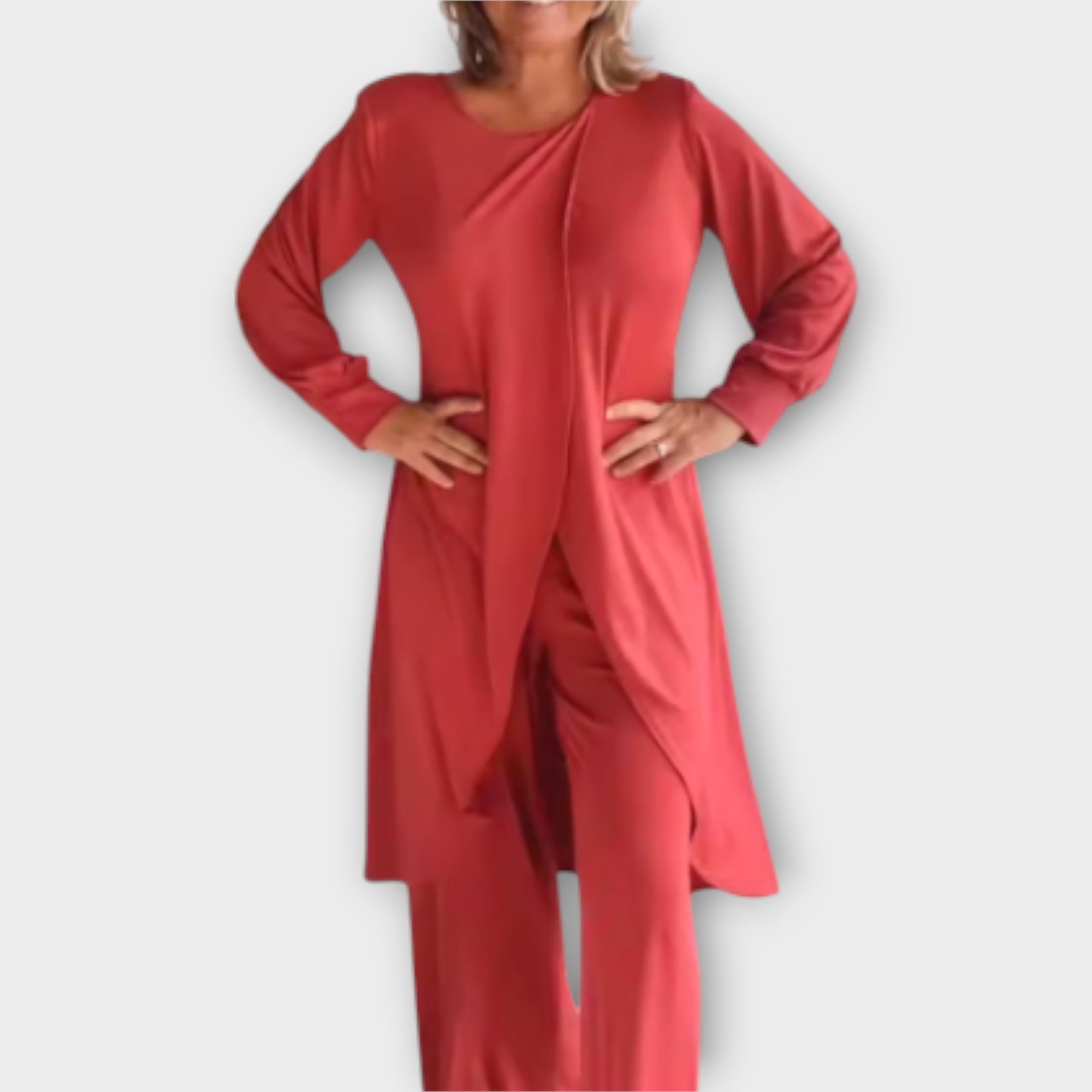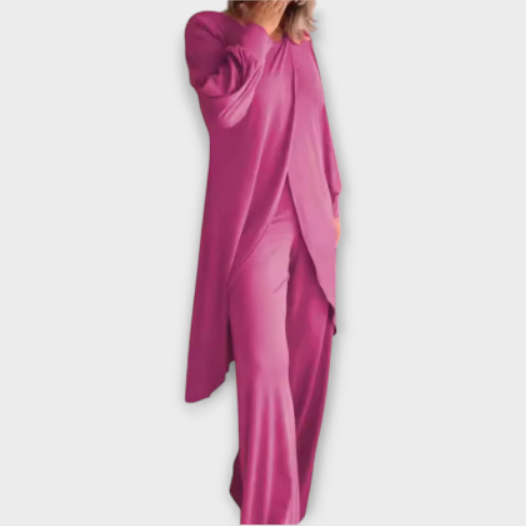 Ένα κομψό σετ που συνδυάζει άνεση και στυλ, χαρίζοντας τη διακριτική πολυτέλεια που αναζητάτε για κάθε περίσταση. Ο ευέλικτος σχεδιασμός του το καθιστά ιδανικό για καθημερινές εμφανίσεις αλλά και για πιο εκλεπτυσμένες στιγμές. Η απαλή υφή του προσφέρει αίσθηση άνεσης όλη μέρα, ενώ η χαλαρή εφαρμογή του επιτρέπει ελευθερία κινήσεων και μια αβίαστα κομψή εμφάνιση. Ένα κομμάτι που ενώνει πρακτικότητα και διαχρονική φινέτσα.