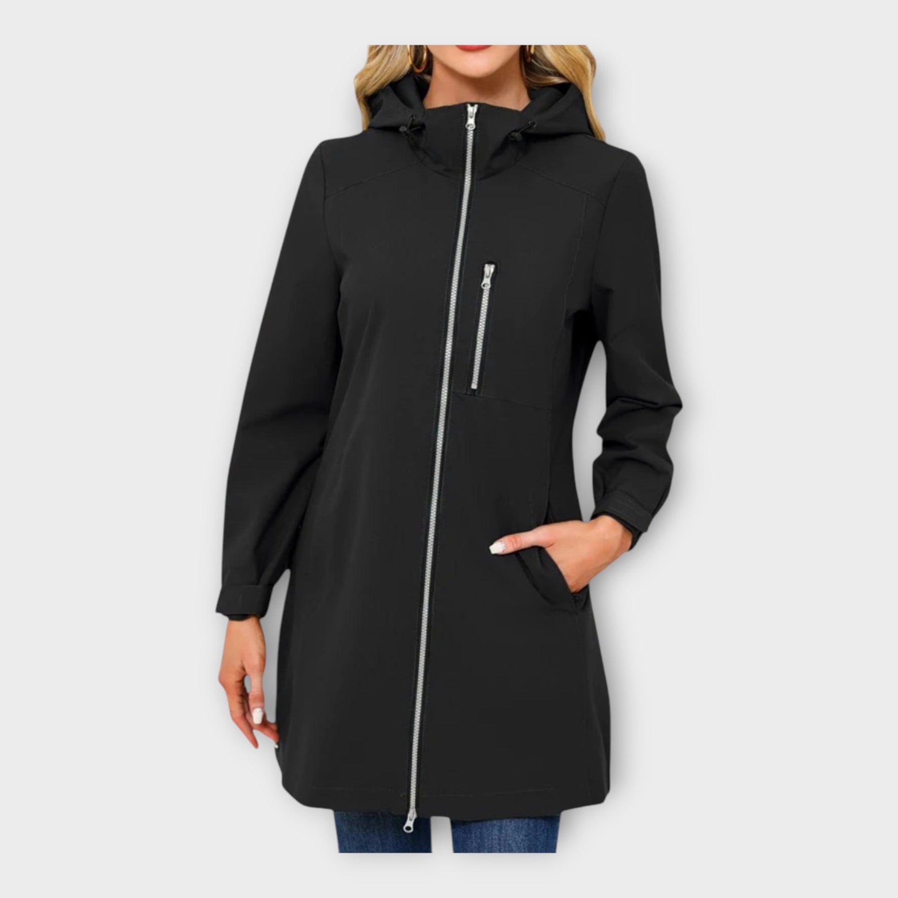 Μακρύ Αδιάβροχο Μπουφάν με Κουκούλα