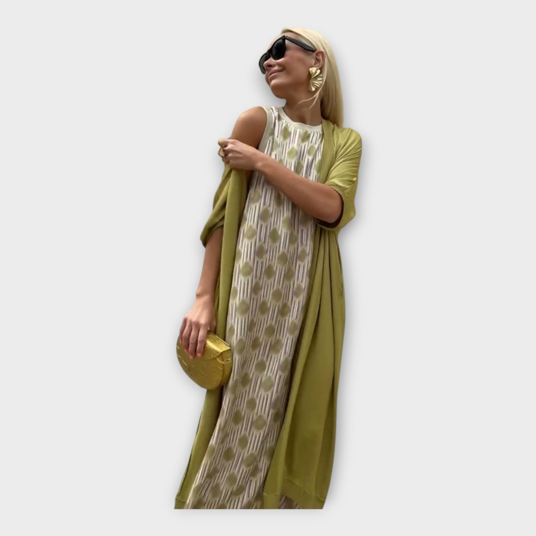 Ένα κομψό φόρεμα που προσαρμόζεται σε κάθε στυλ, χαρίζοντας την τέλεια τελική πινελιά σε κάθε εμφάνιση. Ο ευέλικτος σχεδιασμός του το καθιστά ιδανικό για όλες τις περιστάσεις, από casual έως πιο επίσημες. Ένα κομμάτι που συνδυάζει πρακτικότητα και διαχρονική φινέτσα, με άνεση και εκλεπτυσμένο χαρακτήρα.